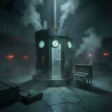 [Instrumental] [0:00 warm ambient pad, calm] [0:04 soft sparse piano notes] [0:11 stable warm atmosphere] [0:12 tension rising, warmth fading] [0:15 shift to dark drone] [0:18 industrial pulse, pressure builds] [0:25 heavy cold atmosphere] [0:29 dissonant accent, peak tension] [0:30 slow fade] [0:35 silence] [End]